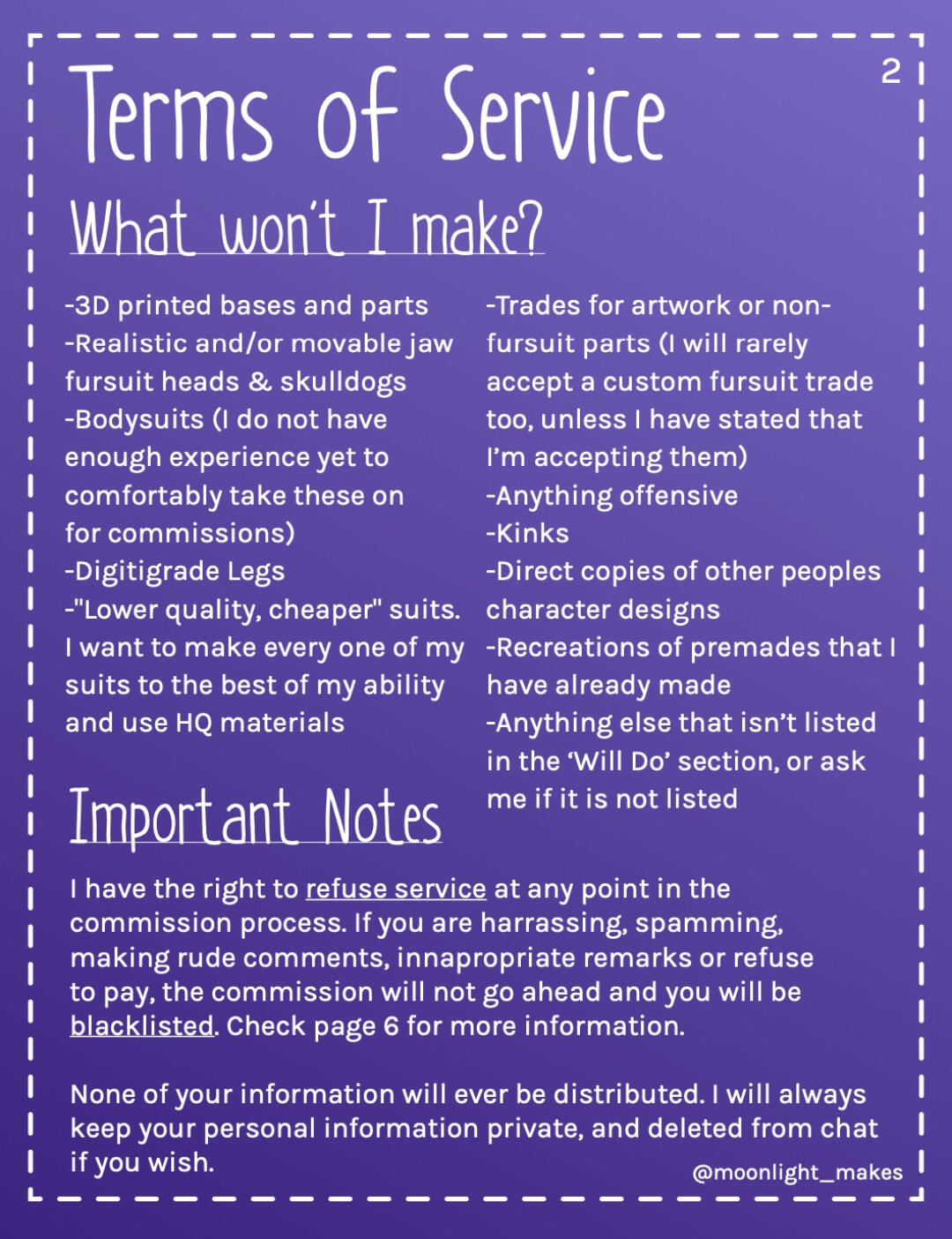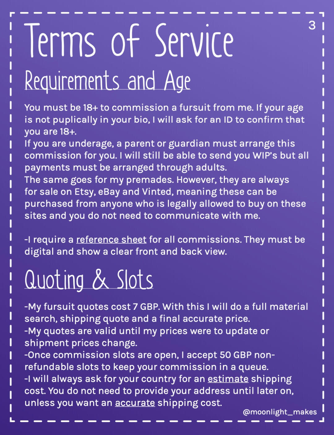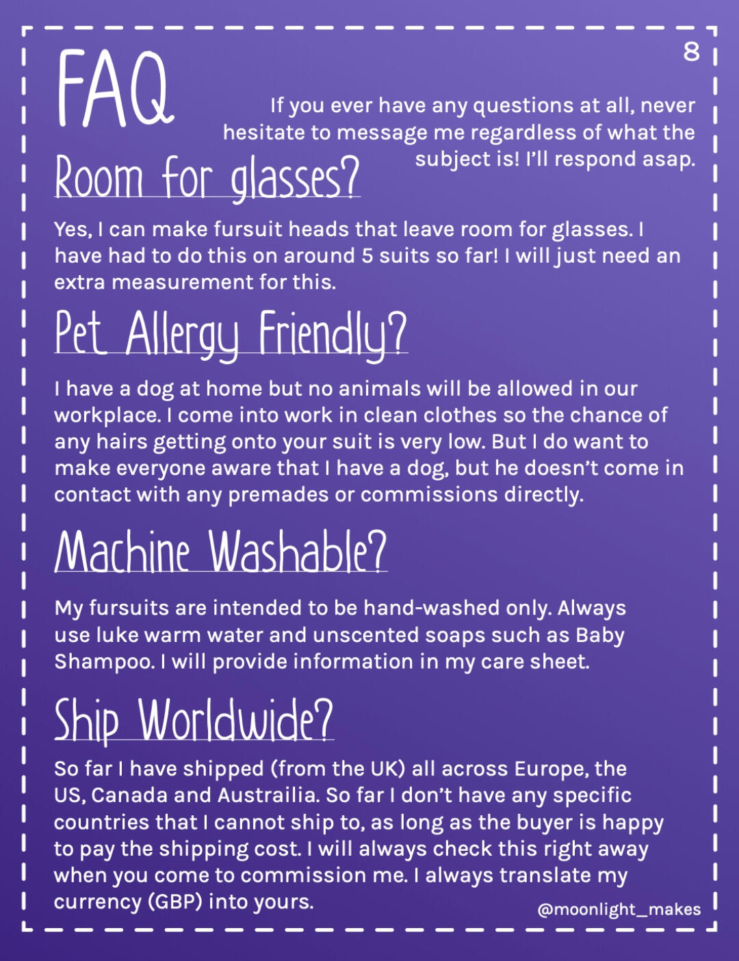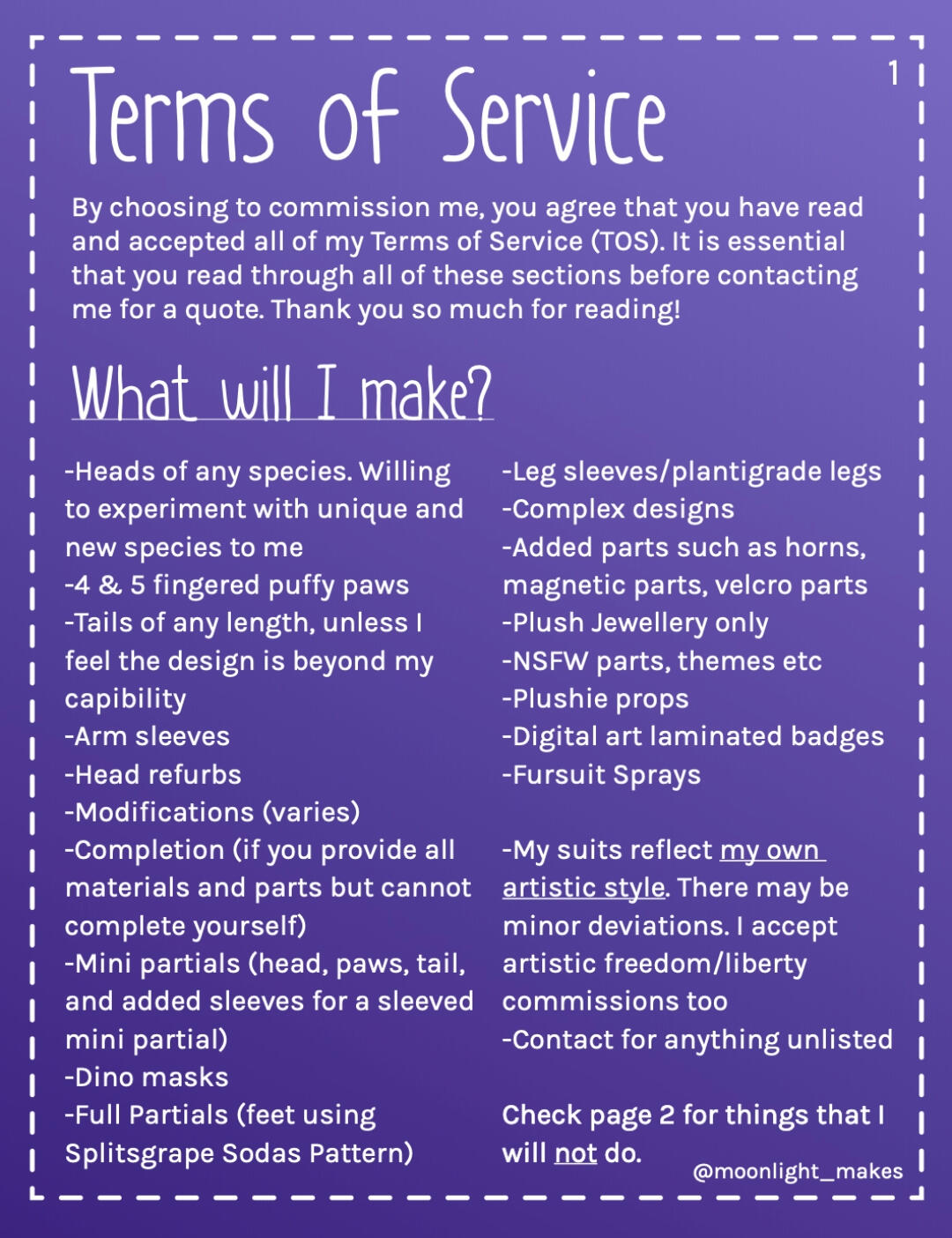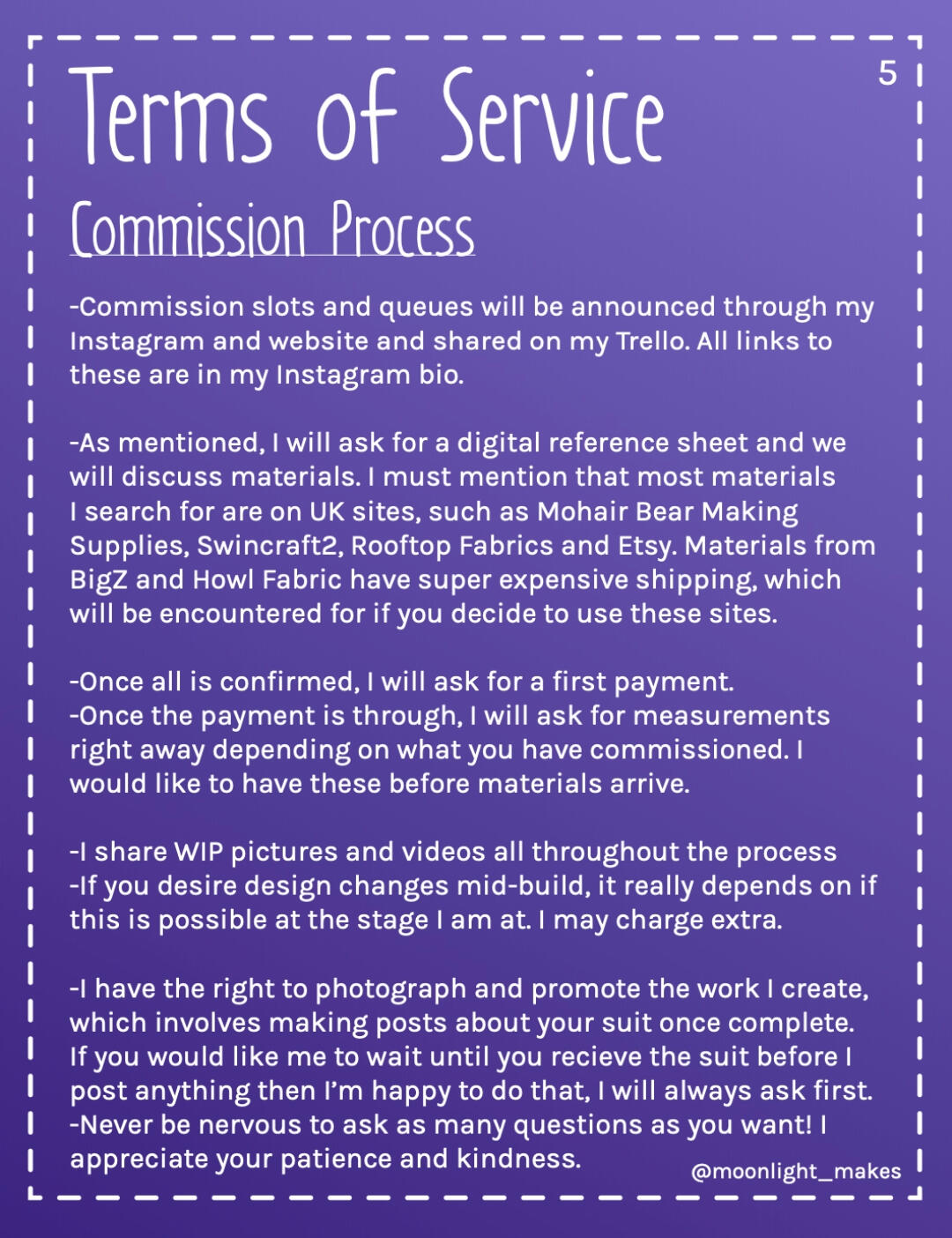 Here are can find all of the important pieces of information regarding commissions. Please also check out my commission slot status! You can find this on my home page.If you have any general questions, don’t hesitate to contact me on Instagram @moonlight_makes or via email [email protected]